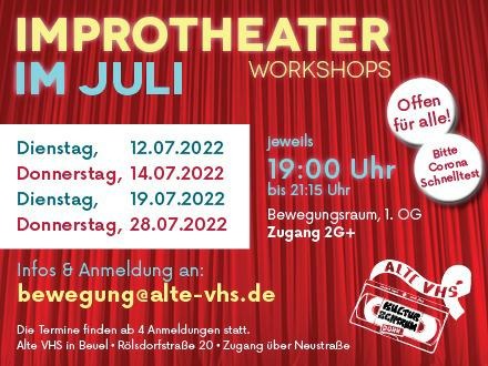« Alle Veranstaltungen Diese Veranstaltung hat bereits stattgefunden. Improtheaterworkshop 28 Juli 2022 | 19:00 - 21:30 « Haus-Orgaplenum Offenes Atelier » Zum Kalender hinzufügen Google Kalender iCalendar Outlook 365 Outlook Live Details Datum: 28 Juli 2022 Zeit: 19:00 - 21:30